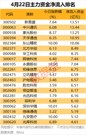 主力资金 | 4股尾盘获主力重点加仓.