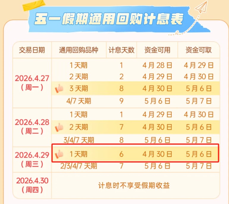 “五一”红包!就在今天 1天赚6天利息!通用回购最佳时点来了