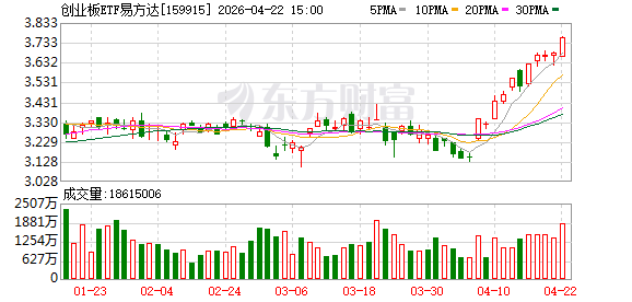 创业板指站上3700点,“易中天”再度走强,外资加码光通信,创业板ETF易方达(159915)涨近2%,盘中溢价频现.