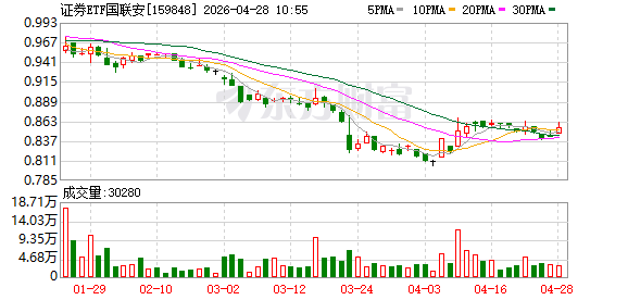 证券ETF国联安(159848)今日盘中涨幅突破2% 今日证券板块迎来普涨行情.