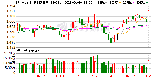 创业板新能源ETF鹏华涨超5%,新能源产业链全线走强.