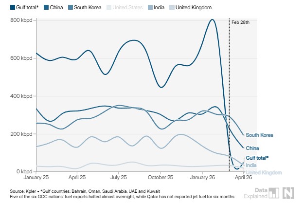 航空业“油荒”危机将至:海湾出口暴跌八成 欧洲库存仅够六周