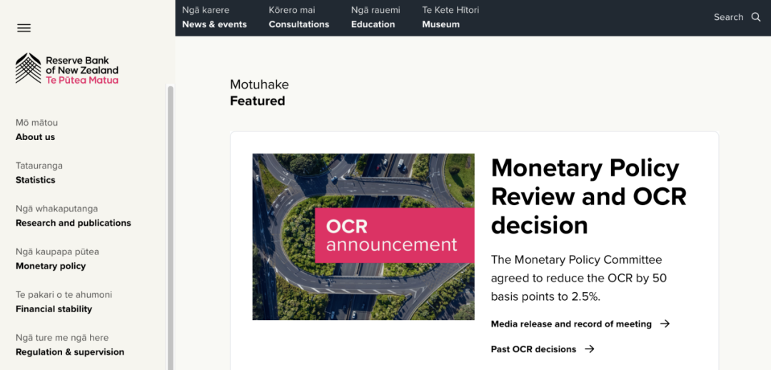 总体而言,委员会达成共识,将官方现金利率(OCR)下调50个基点至2.5%。委员会仍准备在必要时进一步下调官方现金利率,以确保通胀在中期内可持续地稳定在2%的目标中点附近。自2024年8月以来,新西兰联储已累计降息300个基点。